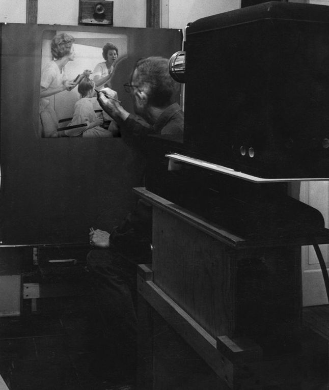 Rockwell utilizando el Balopticón para calcar la fotografía